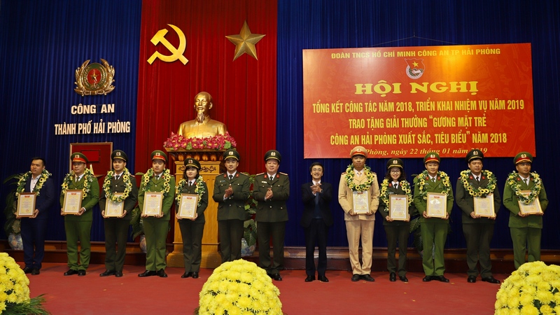 Nhân dịp này, 19 tập thể và 31 cá nhân được Trung ương Đoàn TNCS Hồ Chí Minh; Thành đoàn Hải Phòng và Giám đốc CATP biểu dương, khen thưởng. Đặc biệt, hội nghị đã trao giải thưởng “Gương mặt trẻ Công an Hải Phòng xuất sắc, tiêu biểu” năm 2018 cho 10 cán bộ đoàn viên có nhiều thành tích xuất sắc trong công tác chiến đấu cũng như trong công tác Đoàn và phong trào thanh niên của CATP.