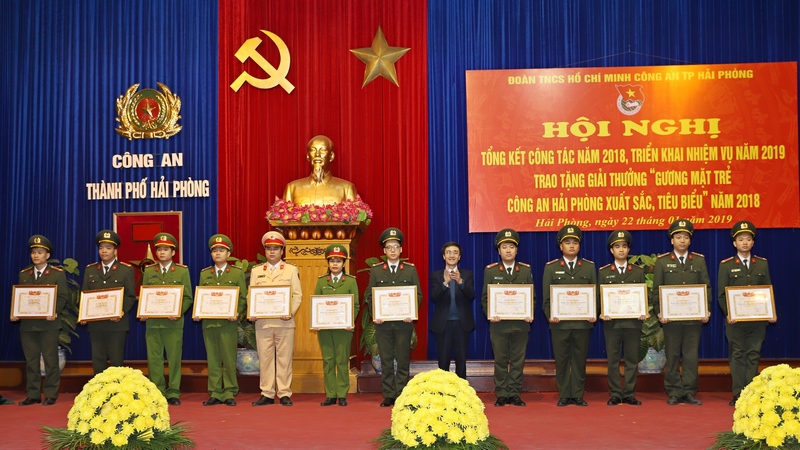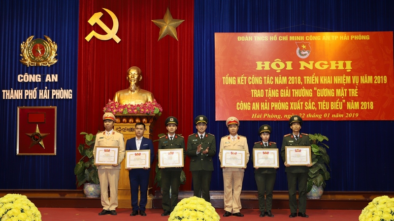 Nhân dịp này, 19 tập thể và 31 cá nhân được Trung ương Đoàn TNCS Hồ Chí Minh; Thành đoàn Hải Phòng và Giám đốc CATP biểu dương, khen thưởng. Đặc biệt, hội nghị đã trao giải thưởng “Gương mặt trẻ Công an Hải Phòng xuất sắc, tiêu biểu” năm 2018 cho 10 cán bộ đoàn viên có nhiều thành tích xuất sắc trong công tác chiến đấu cũng như trong công tác Đoàn và phong trào thanh niên của CATP.