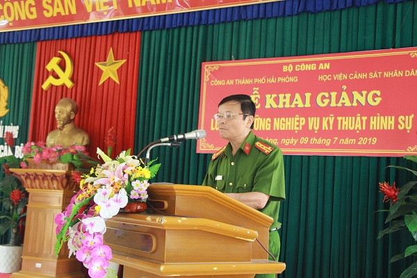 Phát biểu tại lễ khai giảng, Đại tá Mai Xuân Thắng – Phó Giám đốc CATP, nhấn mạnh: Công tác kỹ thuật hình sự là một trong những biện pháp khoa học nghiệp vụ quan trọng trong phòng ngừa, đấu tranh chống tội phạm của lực lượng Công an; là yếu tố quyết định trong việc xác định thủ phạm gây án, tính chất vụ án, góp phần ổn định tình hình ANTT địa phương.