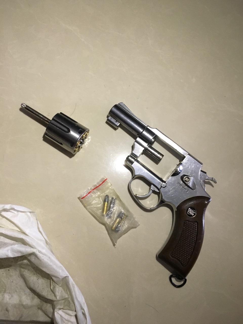 Tiến hành khám xét nơi ở đối tượng tại quận Kiến An, cơ quan điều tra đã thu giữ 1 túi nilon chứa các viên nén màu hồng, 4 khẩu súng, 2 điện thoại di động, 1 bộ dụng cụ sử dụng ma túy.