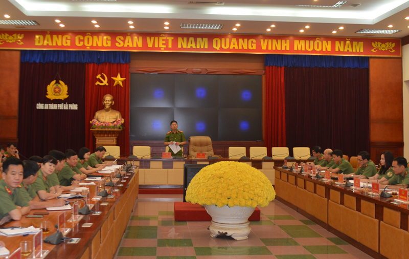 Đại tá Vũ Thanh Chương, Phó Giám đốc CATP chủ trì họp sơ kết, rút kinh nghiệm công tác quản lý sử dụng pháo