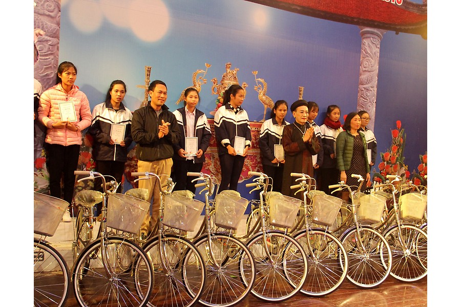 Trong dịp này, các nghệ nhân thanh đồng tặng 50 chiếc xe đạp với tổng trị giá 80 triệu đồng hỗ trợ các em học sinh có hoàn cảnh đặc biệt khó khăn học giỏi của 5 trường THPT trên địa bàn thành phố. 50 học sinh được tặng xe đạp dịp này đến từ các huyện Kiến Thụy, Cát Hải, Vĩnh Bảo, Tiên Lãng và Thủy Nguyên./.