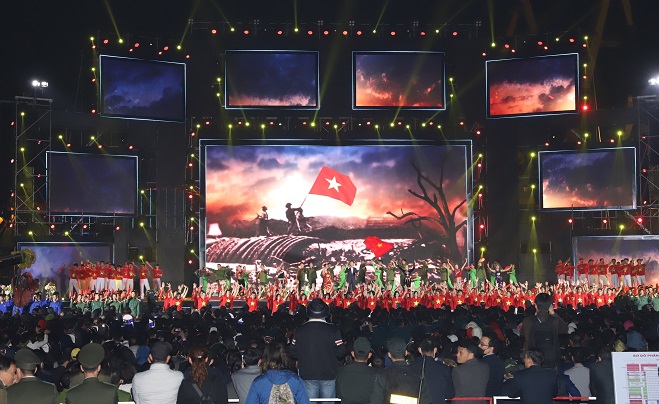 Từ 9 năm kháng chiến trường kỳ mà chói lọi là chiến thắng Điện Biên chấn động địa cầu, đến cuộc kháng chiến chống Mỹ, thống nhất đất nước bằng cuộc tổng tiến công và nổi dậy mùa xuân 1975 lịch sử. Từ công cuộc tái thiết sau chiến tranh đến đổi mới mở cửa hội nhập quốc tế, đưa Việt Nam thành một nước đang phát triển… tất cả lần lượt tái hiện trong Chương trình, lắng đọng mà hào sảng, càng tôn thêm tầm vĩ đại của Đảng Cộng sản Việt Nam suốt 90 năm qua.