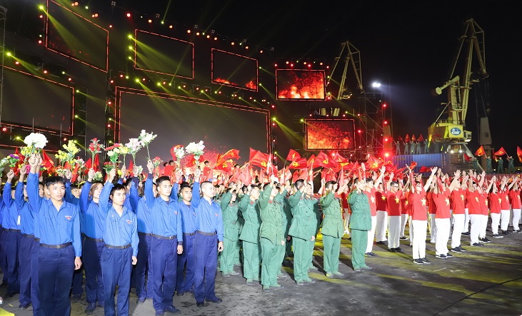 Trước thời điểm diễn ra Chương trình, khu vực điểm cầu Hải Phòng được tổ chức tại bến Ngự (trong khuôn viên Cảng Hoàng Diệu – Cảng Hải Phòng) đã tưng bừng khí thế hân hoan của hàng nghìn khán giả tham dự, trong lung linh muôn sắc hoa đăng, phấp phới rực rỡ cờ Đảng và cờ Tổ quốc. Nơi đây, 74 năm trước đã chứng kiến ngày Hồ Chủ tịch – Người cha già vĩ đại của dân tộc trở về sau chuyến công du nước Pháp. Cũng tại nơi đây, cách đây đúng 60 năm, vào tháng 1-1960, Người đã cùng nhân dân Hải Phòng đón chuyến tàu đầu tiên chở hơn 900 kiều bào Thái Lan trở về xây dựng Tổ quốc.