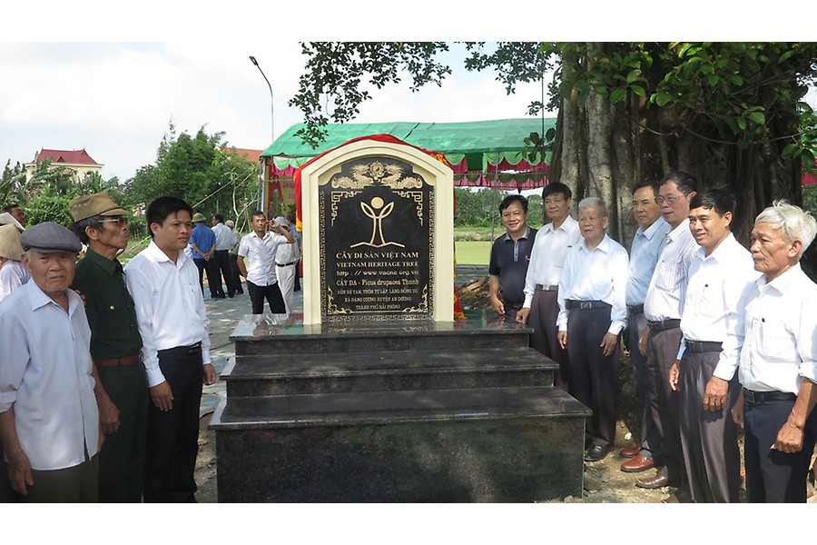 Gắn biển “Cây di sản Việt Nam” cho cây đa đền Đệ Tam.