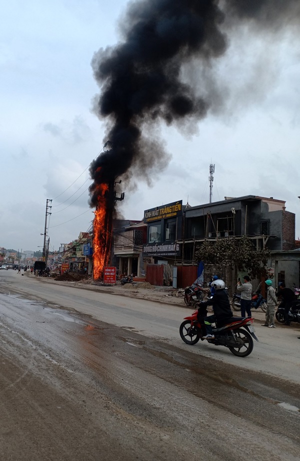 Đáng lo ngại là có rất nhiều cột điện ngay sát nhà dân, khi cột điện cháy nếu không phát hiện kịp thời dễ dẫn tới cháy lan theo đường dây vào sâu nhà dân, trong khi nhiều loại dây cáp các loại không bó gọn, khiến lửa càng mạnh, gây nguy hiểm cho người và phương tiện tham gia giao thông.