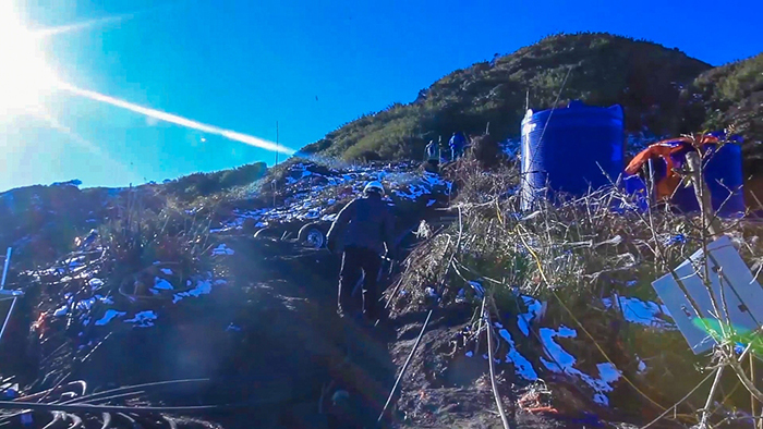 Tới điểm cách trụ chính chừng 500m thì vách núi đã bắt đầu hun hút. Tay cầm bộ đàm, mắt Hậu vẫn bám sát đường cáp đi. Đột ngột, Hậu thấy chới với. Chỉ vài giây sau, cậu trai trẻ biết mình đang bị trượt xuống vực sâu hun hút.