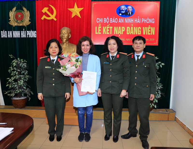 Chiều ngày 25-1, Chi bộ Báo An ninh Hải Phòng tổ chức lễ kết nạp đảng viên mới năm 2019. Thượng tá Nguyễn Thu Hồng, Bí thư Chi bộ, Tổng biên tập Báo An ninh Hải Phòng chủ trì buổi lễ.