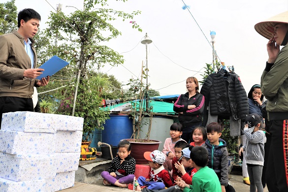 Ông Lê Văn Thực, ông ngoại của hai em bé làng chài, xúc động chia sẻ: “Chúng tôi không có nhà ở trên bờ nên chỉ sống trên sông thôi. Gia đình khó khăn nên điều kiện ăn học, sinh sống của các cháu còn nhiều khó khăn. Tôi rất cảm ơn vì các Đoàn viên, thanh niên Chi đoàn Phòng PB01 – CATP đã thông cảm với hoàn cảnh và giúp đỡ chúng tôi…”.