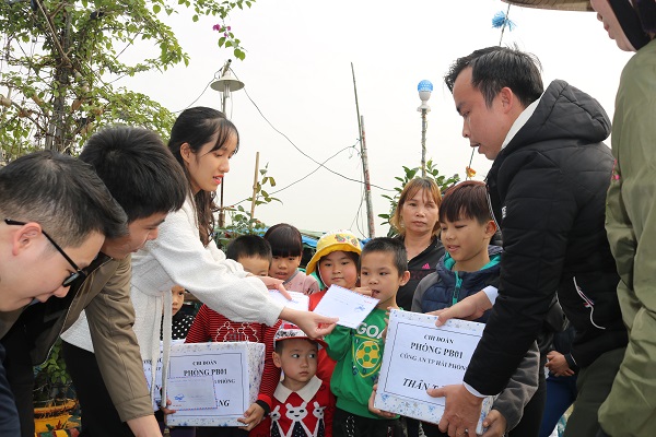 Chiều 17-2, Chi đoàn Phòng PB01 – Công an thành phố (CATP) đã thăm, tặng quà trẻ em có hoàn cảnh khó khăn tại xóm chài Tam Bạc (phường Minh Khai, quận Hồng Bàng). Cùng dự lễ trao quà có đại diện lãnh đạo Đoàn Thanh niên CATP.