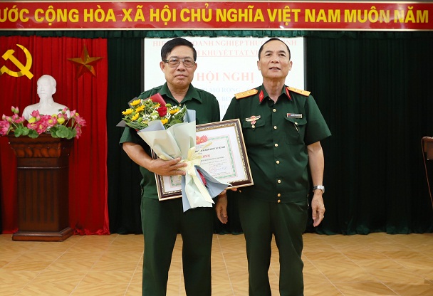 Đại diện Trung ương Hiệp hội doanh nghiệp thương binh và người khuyết tật Việt Nam trao bằng khen tặng Chi hội Hải Phòng