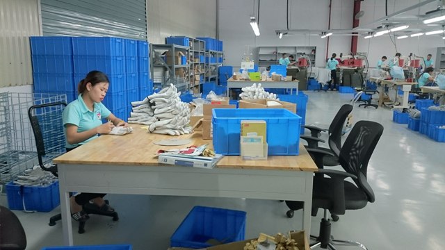 Sản xuất găng tay tại Nhà máy của Công ty Hestra Matsuoka Việt Nam thuộc Khu công nghiệp Nomura Hải Phòng