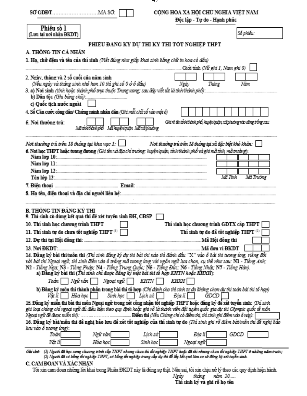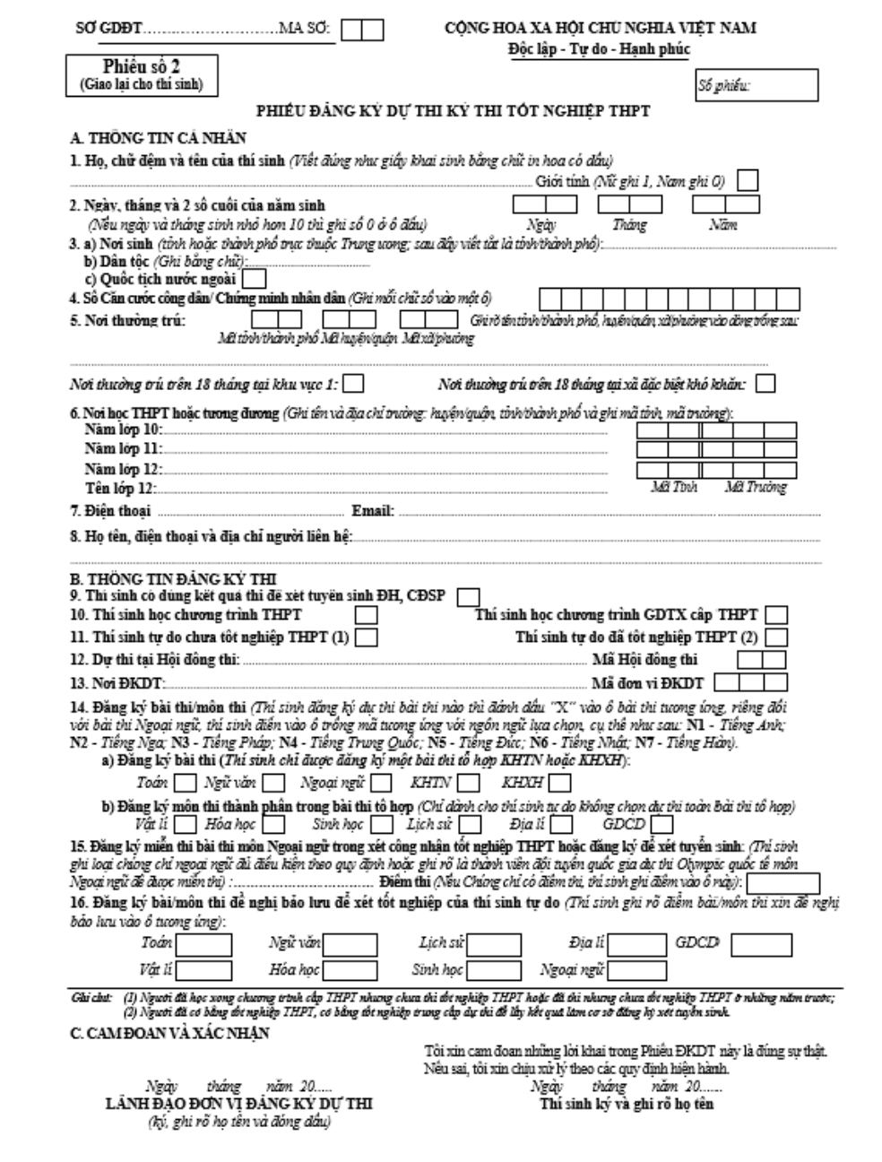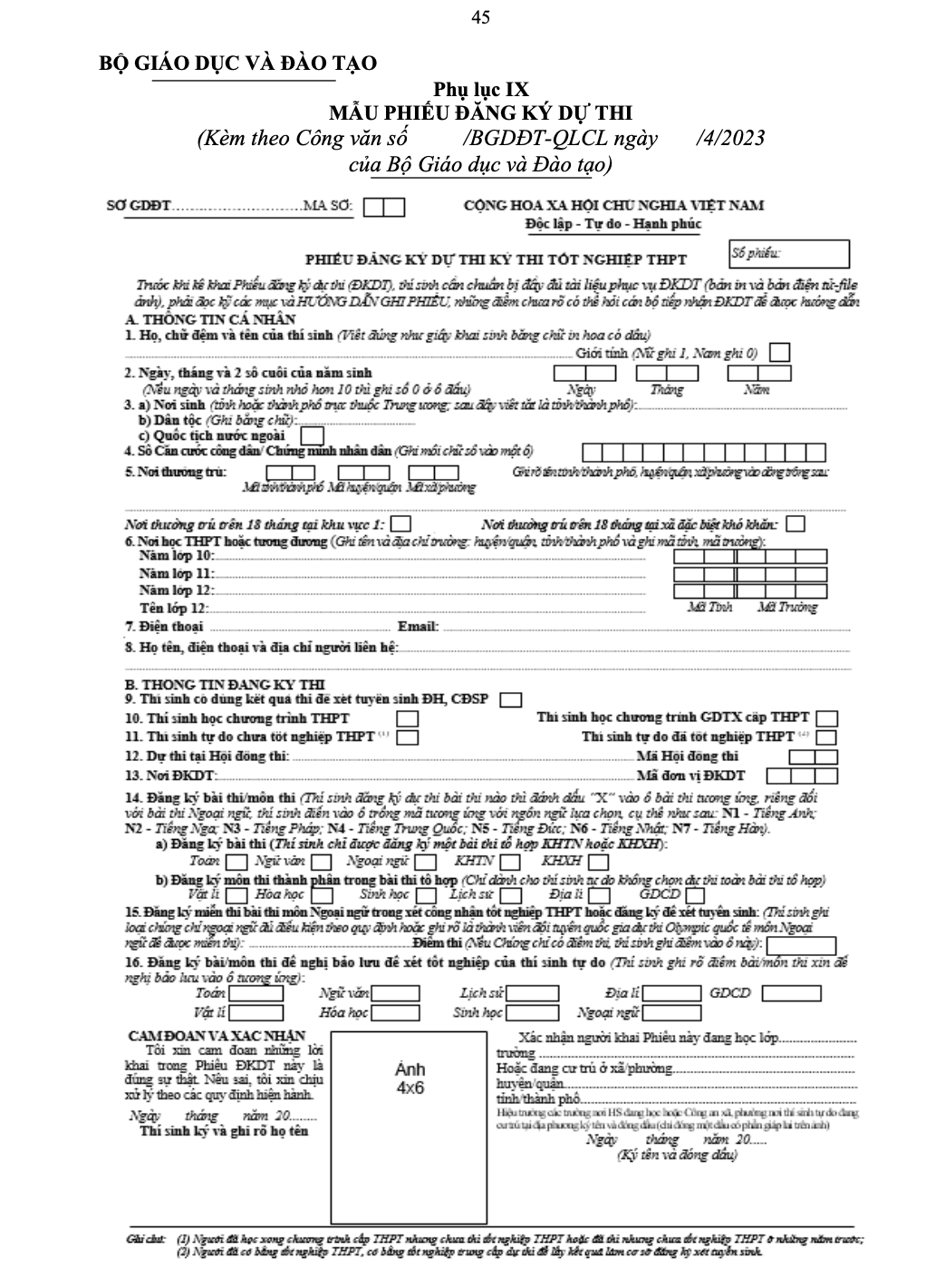 Cách điền 27 mục trên phiếu đăng ký dự thi tốt nghiệp THPT 2023