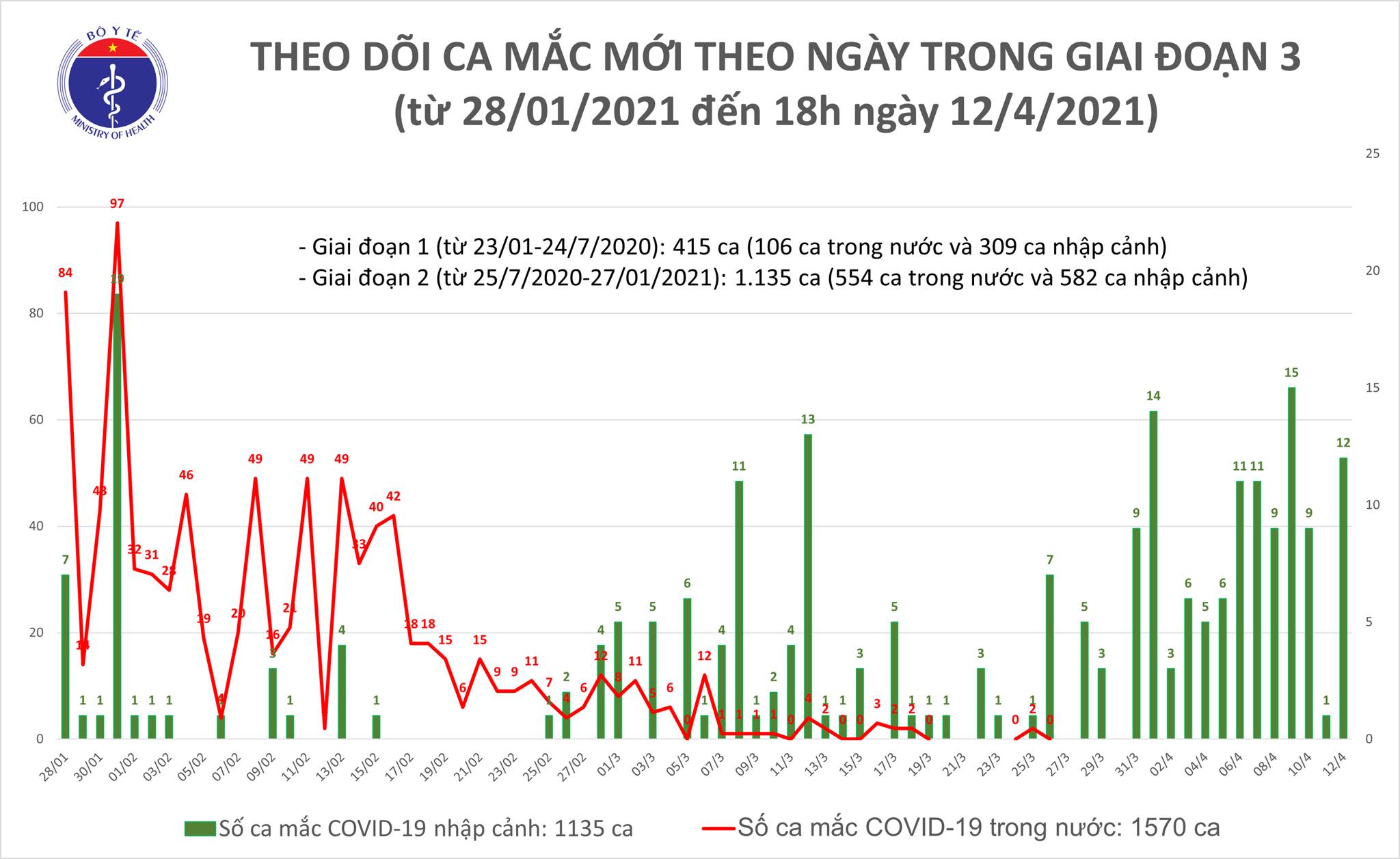 – Tính từ 6h đến 18h ngày 12/4: 09 ca mắc mới, đều là các ca được cách ly ngay sau khi nhập cảnh.