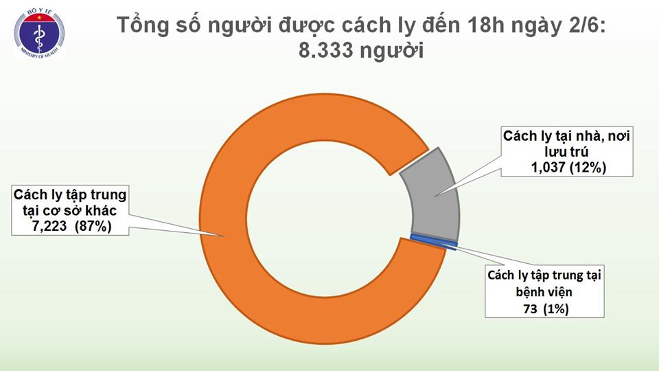 Tính đến 18h ngày 2/6: Việt Nam có tổng cộng 188 ca nhiễm nhập cảnh được cách ly ngay.
