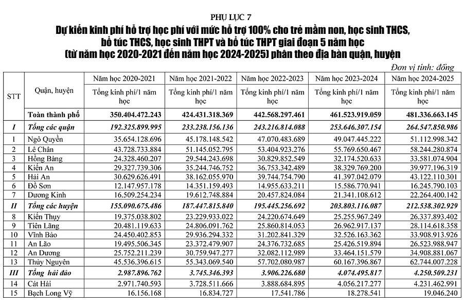 Đề án quy định chính sách hỗ trợ học phí cho trẻ mầm non, học sinh trung học cơ sở, trung học phổ thông trên địa bàn thành phố Hải Phòng.