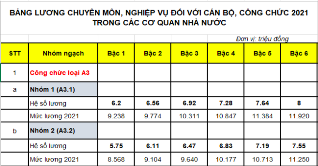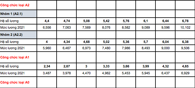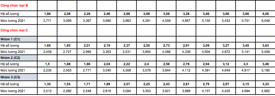 Bảng lương của cán bộ, công chức năm 2021 chính thức. Nguồn: Luatvietnam
