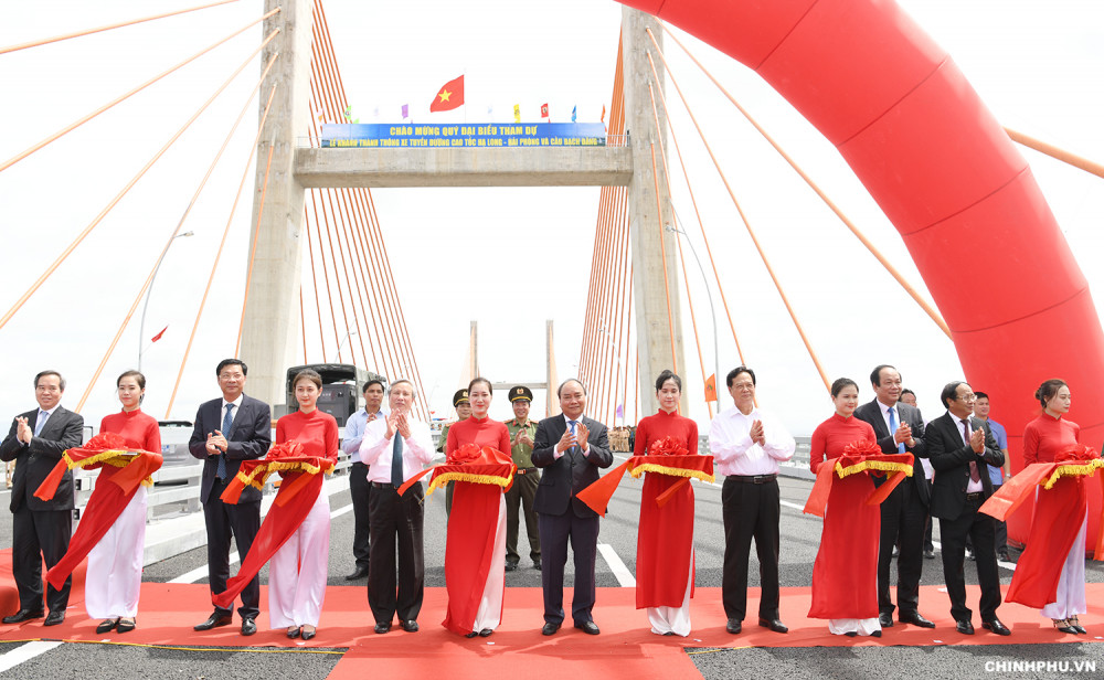 Phát biểu tại Lễ khánh thành, Thủ tướng Chính phủ Nguyễn Xuân Phúc nhấn mạnh, việc hoàn thiện và đưa tuyến cao tốc Hạ Long – Hải Phòng vào hoạt động không chỉ góp phần phát huy thêm giá trị của tuyến cao tốc Hà Nội – Hải Phòng, mà còn thúc đẩy liên kết vùng, góp phần kết nối toàn khu vực tam giác phát triển 3 chữ H: Hà Nội – Hải Phòng – Hạ Long, đồng thời mở thêm không gian và cơ hội phát triển kinh tế xã hội lớn cho toàn khu vực. Thủ tướng cũng cho rằng dự án có sự đột phá bởi tư duy năng động, dám nghĩ dám làm của lãnh đạo địa phương với sự hỗ trợ tích cực của Chính phủ, Thủ tướng Chính phủ các thời kỳ; sự phối hợp chặt chẽ hiệu quả của các bộ, ngành, địa phương liên quan. Đó là một sự táo bạo, sự đột phá cần thiết trong giai đoạn cách mạng hiện nay. Thủ tướng đề nghị chính quyền tỉnh Quảng Ninh và thành phố Hải Phòng phải tiếp tục đổi mới cách thức thu hút đầu tư, cải thiện mạnh mẽ môi trường đầu tư kinh doanh để phát triển nhanh hơn, toàn diện hơn, chất lượng cao hơn để khu vực này trở thành một trung tâm du lịch, chế tạo và sáng tạo hàng đầu của đất nước.