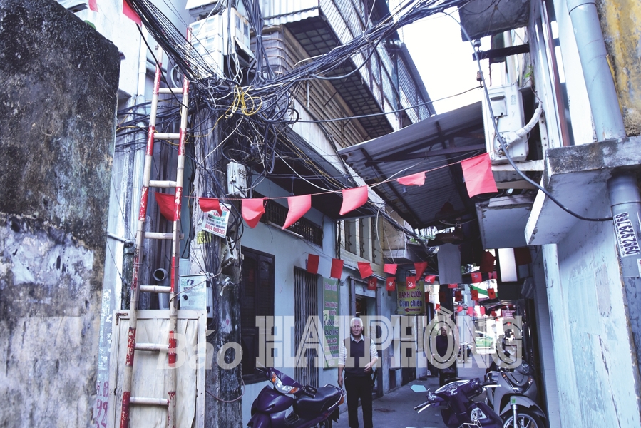 Ngõ 24, phố Lương Văn Can (quận Ngô Quyền) có chưa đến 20 hộ dân sinh sống. Thế nhưng, trên các cột điện trong tuyến ngõ này có tới vài chục loại dây điện, dây cáp viễn thông được đấu nối, kéo ngang, kéo dọc, chồng chéo lên nhau như mạng nhện. Có dây trùng võng ngang đầu người, có dây đứt treo lơ lửng giữa đường đi. Một hộ dân trong ngõ còn tận dụng dây cáp để phơi quần áo tạm thời. Bà Phạm Thị Hòa, nhà số 10/24 phố Lương Văn Can cho biết: “Cột điện ngay cửa nhà tôi treo chằng chịt đủ thứ, từ tủ công tơ điện, tủ viễn thông, dây điện, dây cáp đến dây chờ cuộn thành búi lớn, ép sát tường nhà. Đã vài lần, tại cột điện này xảy ra chập cháy nhưng may kịp thời dập tắt, không gây thiệt hại lớn”… Cũng như vậy, ngõ 26 phố Trần Nguyên Hãn (quận Lê Chân) thực sự là tuyến ngõ rộng đẹp, văn minh nếu không có hình ảnh những cột điện chằng chịt dây cáp, dây điện đan xen nhau như mắc cửi, rối rắm, trông rất nguy hiểm. Đấy không phải là những trường hợp cá biệt.