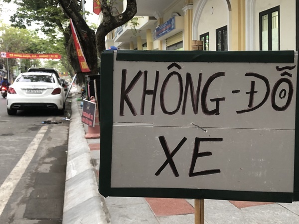 Trong một đô thị hiện đại, giữa lòng đường có một biển báo như trên rõ ràng là phản cảm. Nhưng tình trạng đậu đỗ xe tràn lan hiện đang là nỗi bức xúc của nhiều hộ kinh doanh khác hoặc ở nhà mặt đường trên các đường phố. Một chủ hiệu may lớn trên đường Hai Bà Trưng than thở, nhà có 2 xe ô tô, có ga-ra để xe trong nhà nhưng chỉ trừ lúc đêm khuya hoặc sáng sớm, còn lại bất cứ thời điểm nào cũng bị các loại xe ô tô tự nhiên đậu đỗ, chắn trước cửa nhà, khiến gia chủ đánh xe ra vào nhà hết sức khó khăn, vất vả, thậm chí cũng buộc phải tìm chỗ đỗ ngoài đường, khi nào vãn xe mới cho vào nhà.