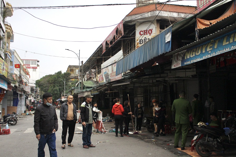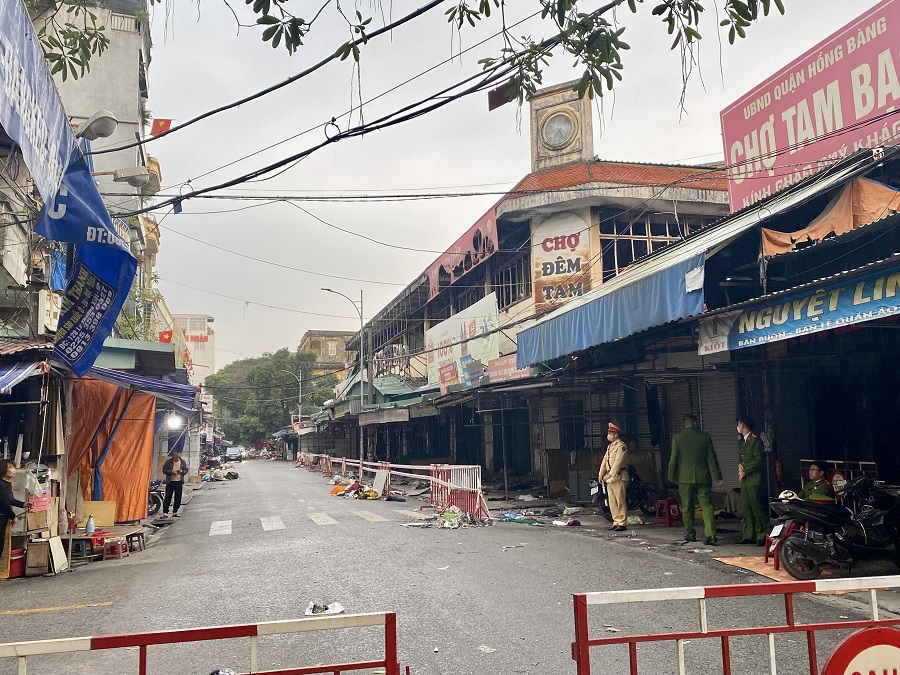 Từ khu chợ sầm uất, sau đám cháy lớn sáng 12/2, chợ Tam Bạc (chợ Đổ), thuộc quận Hồng Bàng, trở nên vắng bóng người.