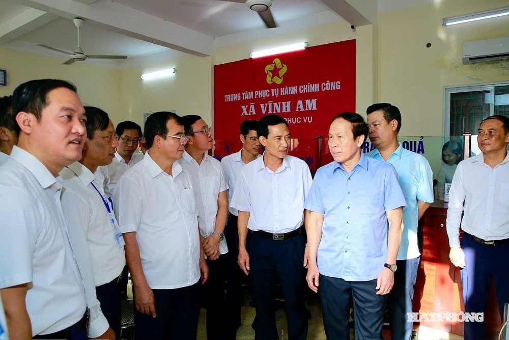 Trước đó, đồng chí Bí thư Thành ủy Lê Tiến Châu cùng Đoàn công tác của thành phố kiểm tra tình hình thực tế hoạt động Trung tâm Phục vụ hành chính công và cơ sở vật chất, trụ sở làm việc tại xã Vĩnh Hải, Vĩnh Am; kiểm tra các dự án trên địa bàn 7 xã; dâng hương, dâng hoa tại Đền thờ Trạng Trình Nguyễn Bỉnh Khiêm và nghe báo cáo về việc xây dựng hồ sơ đề nghị UNESCO vinh danh Trạng Trình Nguyễn Bỉnh Khiêm.