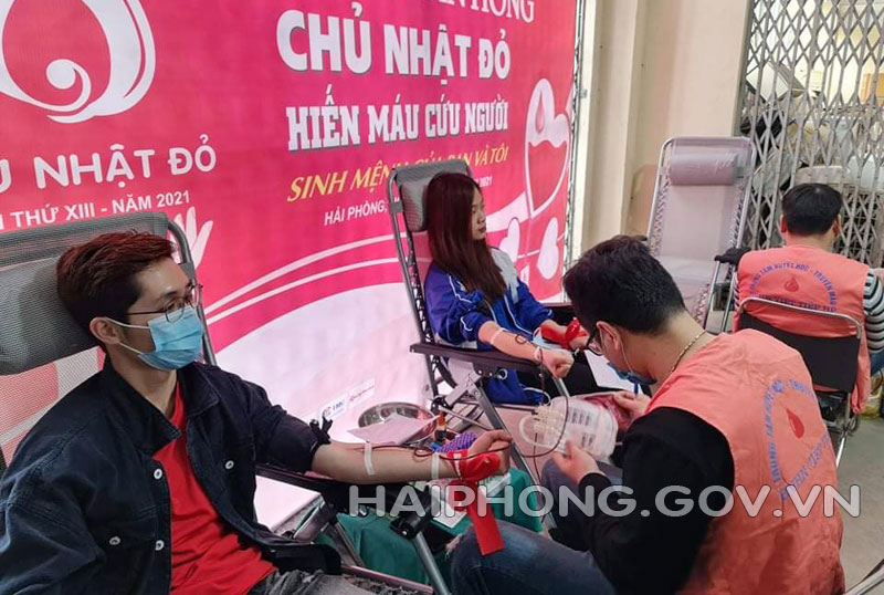 Cùng với đoàn thanh niên cả nước, Đoàn thanh niên thành phố Hải Phòng đã tích cực tham gia tổ chức, vận động đông đảo đoàn viên thanh niên tình nguyện tham gia hiến máu, số lượng máu thu được hàng năm đều đạt từ 600 đơn vị máu trở lên. Năm 2021, Thành đoàn chỉ đạo tổ chức “Chủ nhật đỏ” tại 2 điểm là: Trường Đại học Hàng hải Việt Nam và Trường Đại học Hải Phòng. Tại Trường Đại học Hải Phòng đã tổ chức ngày 13/1, thu được 518 đơn vị máu.