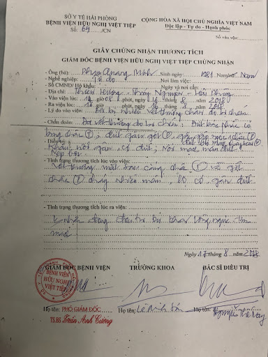 Theo giấy chứng nhận thương tích của bệnh viện, anh Minh bị các thương tích do bị chém vào vùng người, chân, tay gây đứt phần cơ bắp chân, đứt gân gót chân, đang được tích cực điều trị… Về phần nhóm đối tượng, sau khi gây án đã nhanh chóng lên xe ô tô bỏ đi.