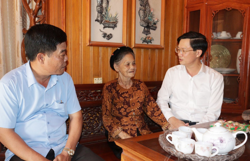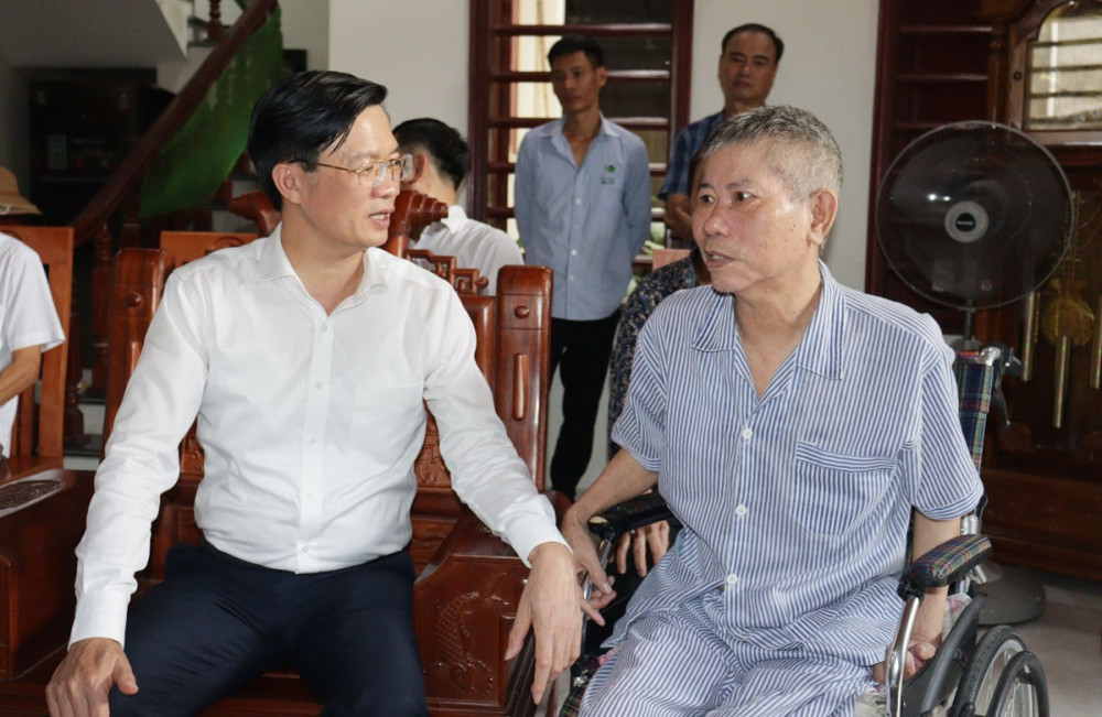 Đồng chí Phạm Văn Lập, Chủ tịch HĐND thành phố đến thăm, tặng quà ông Đào Xuân Đông, sinh năm 1964, là thương binh hạng 2/4, tỷ lệ tổn thương cơ thể 75%, tại thôn 5, xã Thiên Hương và thăm, tặng quà bà Phạm Thị Năm, sinh năm 1935, là vợ liệt sỹ Nguyễn Trung Khẩn, tại thôn 5, xã Kiền Bái.