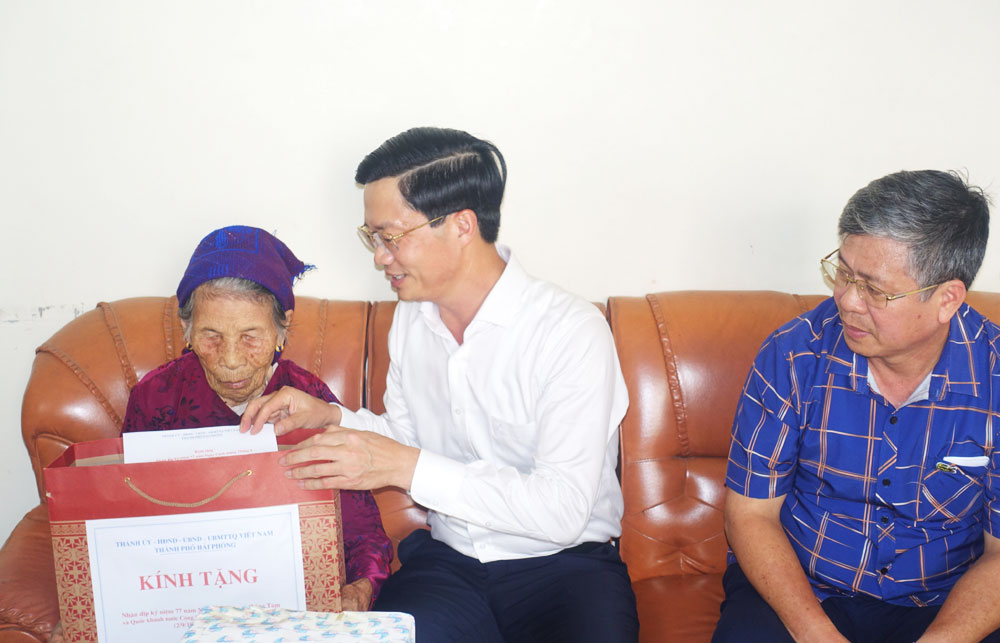 Nhân dịp kỷ niệm 77 năm Quốc khánh nước Cộng hòa xã hội chủ nghĩa Việt Nam (2/9/1945-2/9/2022). Chiều 31/8, đồng chí Phạm Văn Lập, Ủy viên Ban Thường vụ Thành ủy, Chủ tịch HĐND thành phố đi thăm, tặng quà gia đình có công với cách mạng tiêu biểu trên địa bàn quận Đồ Sơn. Cùng đi có đại diện lãnh đạo một số ban, ngành và quận Đồ Sơn.