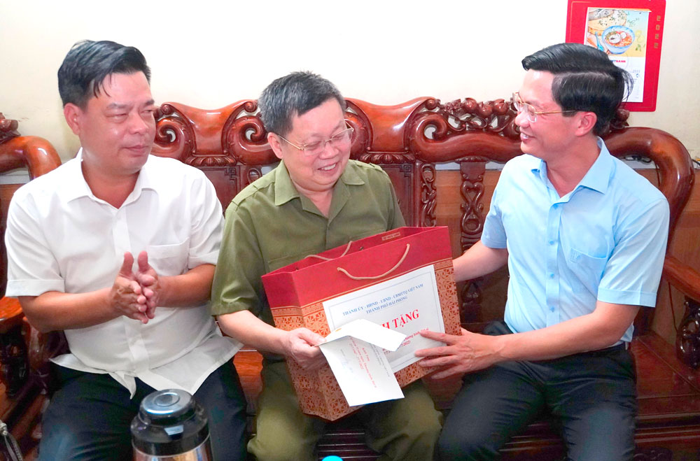 Đồng chí Phạm Văn Lập, Chủ tịch HĐND thành phố đến thăm, tặng quà ông Mai Văn Mỹ, sinh năm 1947, là thương binh hạng 2/4, tỷ lệ thương tật 72%, tại Tổ dân phố Bạch Đằng 1, thị trấn Núi Đèo và thăm, tặng quà ông Doãn Văn Nhai, sinh năm 1932, là người hoạt động cách mạng bị địch bắt tù, đày, tại Thôn 7, xã Thủy Sơn.