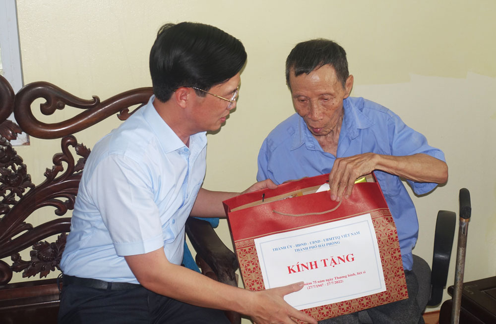 Nhân dịp kỷ niệm 75 năm Ngày Thương binh, liệt sỹ (27/7/1947-27/7/2022), chiều 22/7, đồng chí Phạm Văn Lập, Ủy viên Ban Thường vụ Thành ủy, Chủ tịch HĐND thành phố đi thăm, tặng quà các cá nhân, gia đình người có công trên địa bàn huyện Thủy Nguyên. Cùng đi có đại diện lãnh đạo Sở Lao động-Thương binh và Xã hội và huyện Thủy Nguyên.