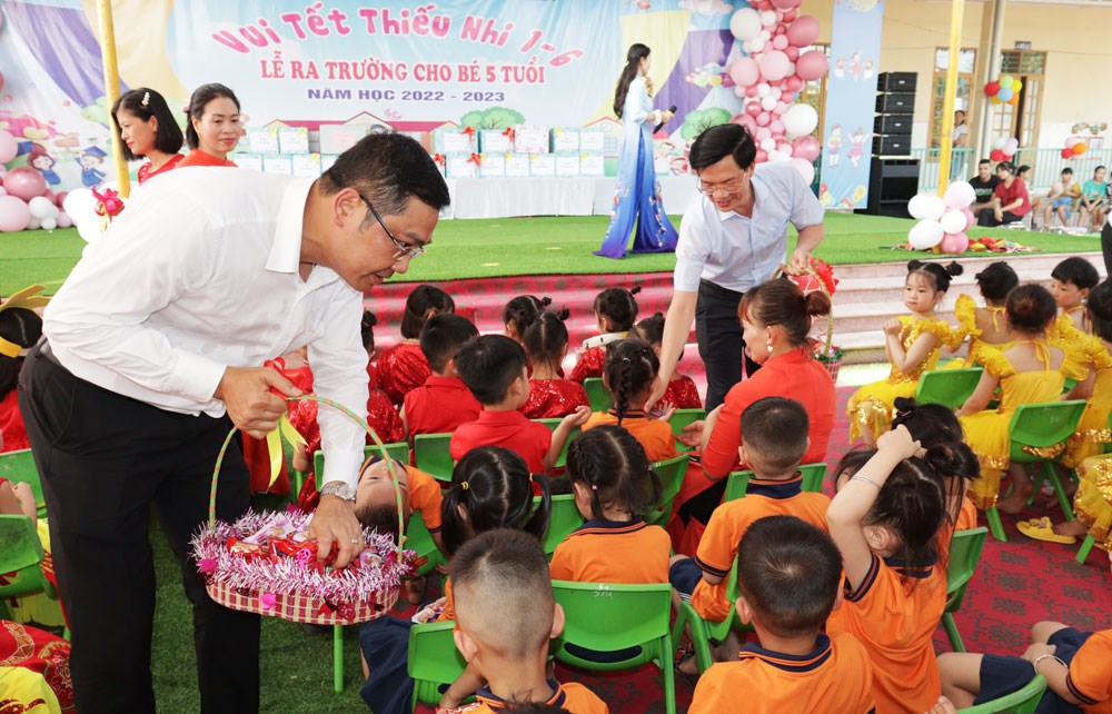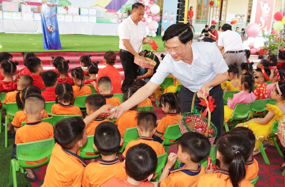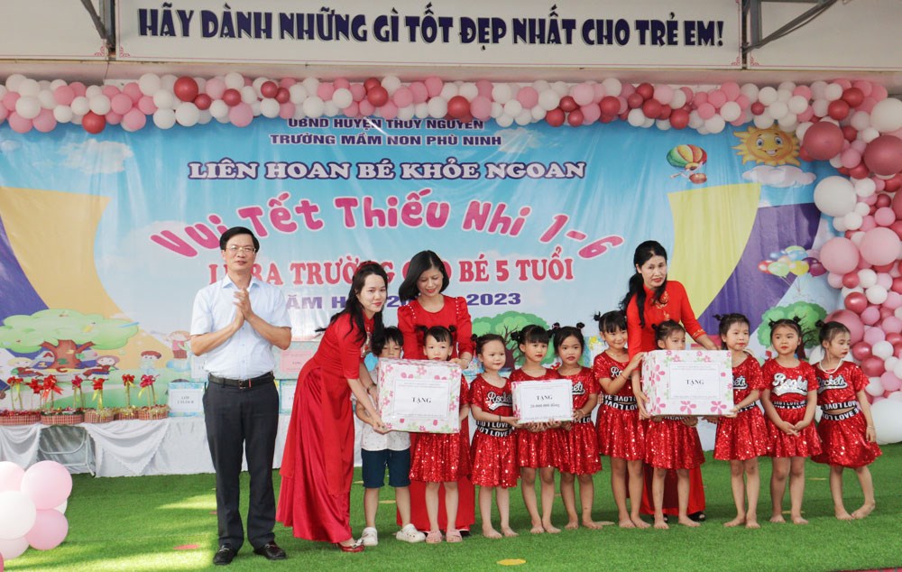Đồng chí Phạm Văn Lập, Chủ tịch HĐND thành phố đến thăm, tặng quà các cháu thiếu nhi Trường Mầm non Phù Ninh (thôn 3, xã Phù Ninh). Trường hiện có 42 cán bộ, giáo viên, nhân viên; có tổng số 15 lớp học với số trẻ là 349 cháu từ 18 tháng đến 6 tuổi. Đồng chí ghi nhận sự nỗ lực, cố gắng của nhà Trường đã khắc phục mọi khó khăn, làm tốt công tác chăm sóc, giáo dục, bảo vệ trẻ em. Đồng chí chúc các cháu nhân ngày Quốc tế Thiếu nhi vui vẻ, hạnh phúc; luôn khỏe mạnh, chăm ngoan, học giỏi và xứng đáng là cháu ngoan Bác Hồ, chủ nhân tương lai của đất nước.