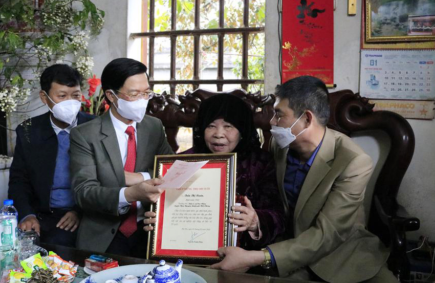 Nhân dịp Xuân Nhâm Dần 2022, đồng chí Phạm Văn Lập, Ủy viên Ban Thường vụ Thành ủy, Chủ tịch HĐND thành phố vừa đi thăm, trao Thiếp mừng thọ của Chủ tịch nước cho công dân 100 tuổi tại huyện Thủy Nguyên. Cùng đi có lãnh đạo huyện Thủy Nguyên.