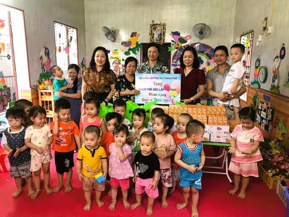 Tại các nhóm trẻ độc lập tư thục, đồng chí Vũ Thị Kim Liên, Chủ tịch Hội Liên hiệp Phụ nữ thành phố gửi những lời chúc mừng tốt đẹp nhất đến các cháu thiếu nhi, mong các cháu luôn chăm ngoan học giỏi và đón Tết Thiếu nhi vui tươi, bổ ích. Đồng chí cũng biểu dương những kết quả mà các nhóm trẻ đã đạt được trong công tác chăm sóc, nuôi dưỡng, dạy và học, góp phần quan trọng để bố mẹ, gia đình các cháu yên tâm lao động sản xuất, đóng góp vào sự phát triển kinh tế xã hội địa phương. Chủ tịch Hội Liên hiệp Phụ nữ thành phố đề nghị cấp ủy, chính quyền địa phương và các bậc phụ huynh tiếp tục quan tâm, bảo vệ, chăm sóc và giáo dục trẻ em, tạo điều kiện thuận lợi nhất để trẻ em vui chơi an toàn, lành mạnh và học tập thật tốt.