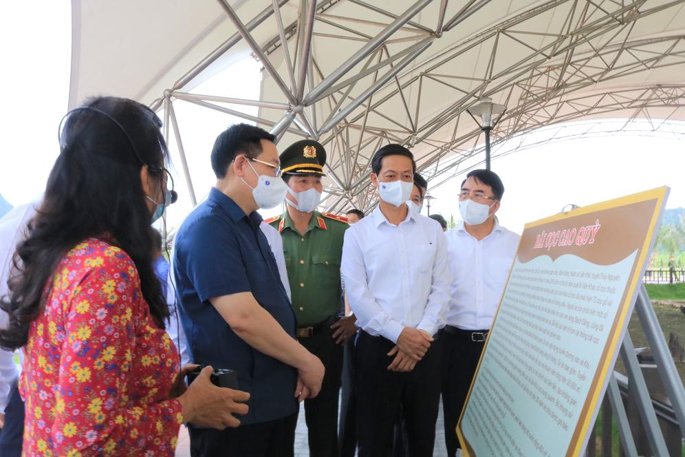 Trước đó, Chủ tịch Quốc hội Vương Đình Huệ cùng các đại biểu đã thăm Khu bảo tồn bãi cọc Bạch Đằng Cao Quỳ, thuộc xã Liên Khê, huyện Thủy Nguyên.