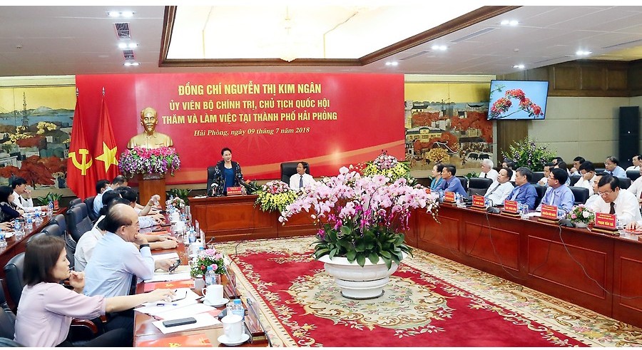 Phát biểu tại buổi làm việc, Chủ tịch Quốc hội Nguyễn Thị Kim Ngân đánh giá cao những kết quả Đảng bộ, chính quyền và nhân dân thành phố Hải Phòng đạt được. Đồng chí nhấn mạnh, từ tháng 1- 2017 đến nay, Hải Phòng đón 4 đồng chí lãnh đạo cao nhất của Đảng, Quốc hội, Nhà nước, Chính phủ về thăm và làm việc. Đi thực tế các công trình, dự án, đồng chí tận mắt thấy Hải Phòng đổi mới, phát triển vượt bậc, nhìn thấy được, cảm nhận được, đúng như khẳng định của Tổng Bí thư Nguyễn Phú Trọng khi về thăm Hải Phòng: “chưa bao giờ, Hải Phòng có được bộ mặt, có cơ đồ, vị thế như bây giờ”.