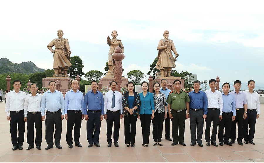 Đồng chí Nguyễn Thị Kim Ngân, Chủ tịch Quốc hội cùng các đồng chí lãnh đạo thành phố thăm và dâng hương tại Khu di tích Bạch Đằng Giang.