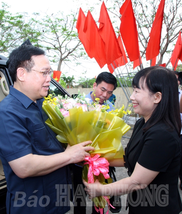 Đồng chí Vương Đình Huệ, Uỷ viên Bộ Chính trị, Chủ tịch Quốc hội cùng các đồng chí lãnh đạo thành phố và các đại biểu huyện Tiên Lãng.