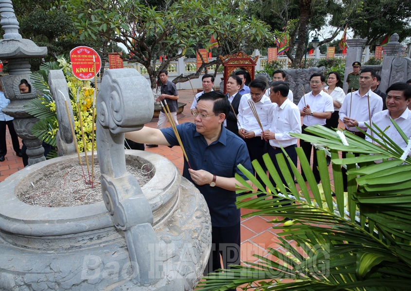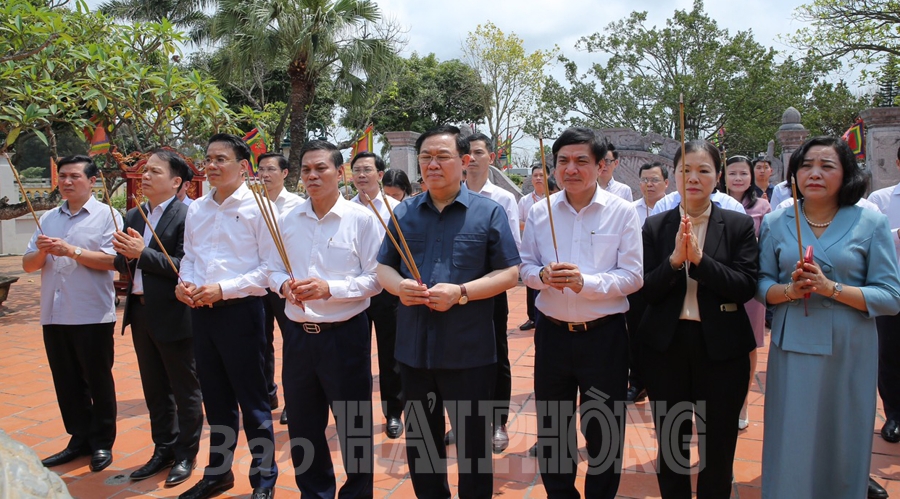 * Sáng cùng ngày, đồng chí Vương Đình Huệ, Ủy viên Bộ Chính trị, Chủ tịch Quốc hội, cùng các đồng chí thành viên Đoàn công tác của Ủy ban Thường vụ Quốc hội, Hội đồng bầu cử quốc gia và các đồng chí lãnh đạo thành phố tới dâng hương, tưởng nhớ danh nhân văn hóa Trạng Trình Nguyễn Bỉnh Khiêm tại Khu di tích quốc gia đặc biệt Trạng Trình Nguyễn Bình Khiêm, xã Lý Học (huyện Vĩnh Bảo). Đồng chí Vương Đình Huệ, Chủ tịch Quốc hội trân trọng ghi sổ lưu niệm: “Thay mặt Quốc hội, Ủy ban Bầu cử quốc gia, Ủy ban Thường vụ Quốc hội, các cơ quan của Quốc hội, các cơ quan thuộc Ủy ban Thường vụ Quốc hội, xin thắp nén tâm ngang, kính cẩn nghiêng mình, tưởng nhớ Trình Quốc công Nguyễn Bỉnh Khiêm. Mong Đảng bộ, chính quyền, nhân dân huyện Vĩnh Bảo, xã Lý Học tiếp tục giữ gìn, tu bổ Khu di tích để lưu truyền cho con cháu mai sau”.