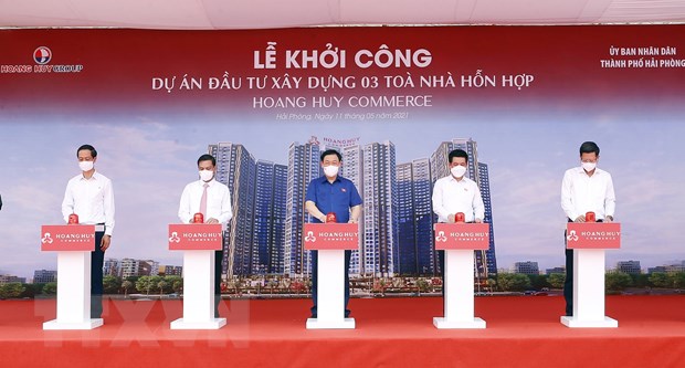 Cùng ngày, Chủ tịch Quốc hội đã dự Lễ khởi công đầu tư xây dựng 3 tòa nhà hỗn hợp Dự án Hoàng Huy Commerce tại phường Kênh Dương và phường Vĩnh Niệm, quận Lê Chân, thành phố Hải Phòng.
