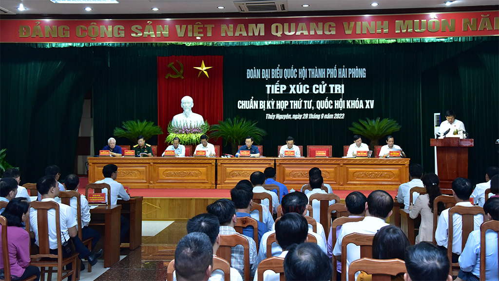 Sáng 29.9, Ủy viên Bộ Chính trị, Chủ tịch Quốc hội Vương Đình Huệ và Đoàn đại biểu Quốc hội TP. Hải Phòng đã tiếp xúc cử tri trước Kỳ họp thứ Tư, Quốc hội Khoá XV tại huyện Thuỷ Nguyên, TP. Hải Phòng.
