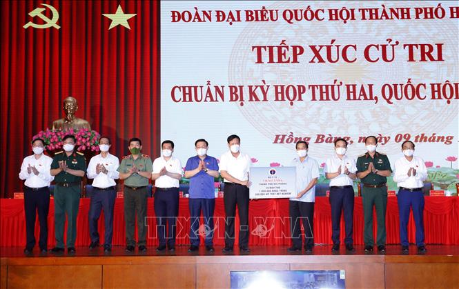 Tiếp tục chương trình tiếp xúc cử tri trước kỳ họp thứ 2, Quốc hội khóa XV, chiều 9/10, tại thành phố Hải Phòng, Chủ tịch Quốc hội Vương Đình Huệ và Đoàn đại biểu Quốc hội thành phố Hải Phòng đã tiếp xúc theo hình thức trực tiếp và trực tuyến với cử tri các phường của quận Hồng Bàng, Hải Phòng.