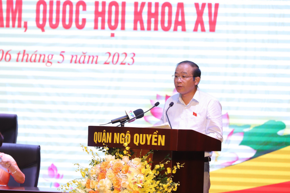 Đồng chí Lã Thanh Tân cũng cho biết, từ Kỳ họp thứ Tư, Quốc hội khóa XV đến nay, Đoàn đại biểu Quốc hội thành phố đã nhận được 97 văn bản của các Bộ, ngành, cơ quan Trung ương trả lời 185/210 kiến nghị của cử tri thành phố Hải Phòng. Đối với kiến nghị của cử tri quận Ngô Quyền, từ trước Kỳ họp thứ Hai đến trước Kỳ họp thứ Tư, Đoàn đã tổng hợp 23 kiến nghị gửi các cơ quan Trung ương và thành phố xem xét, giải quyết; trong đó có 18 kiến nghị thuộc thẩm quyền giải quyết của các cơ quan Trung ương và đã có văn bản trả lời; 05 kiến nghị thuộc thẩm quyền giải quyết của thành phố đã được UBND thành phố giải quyết và có văn bản trả lời.