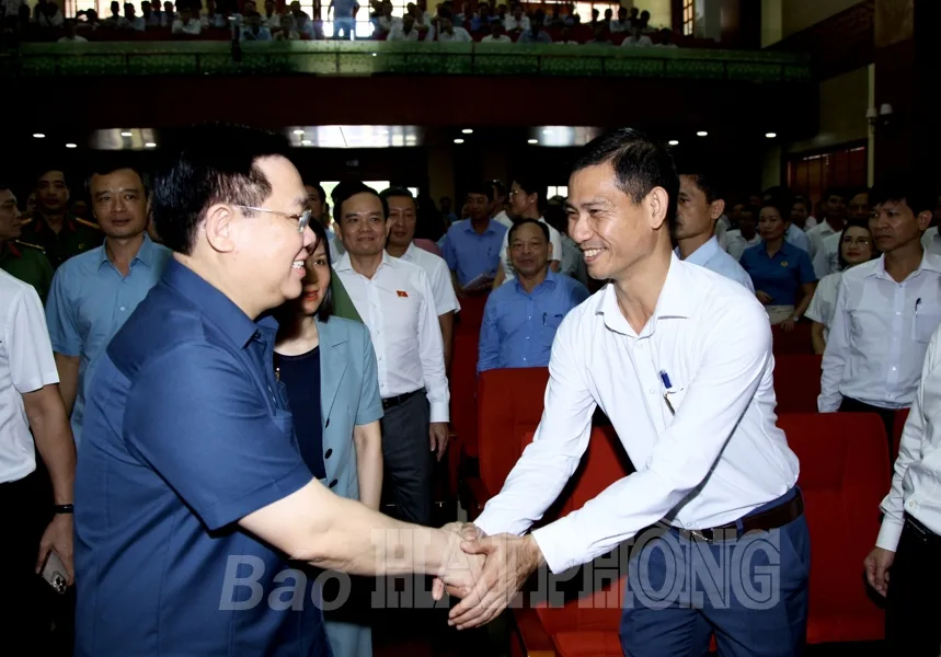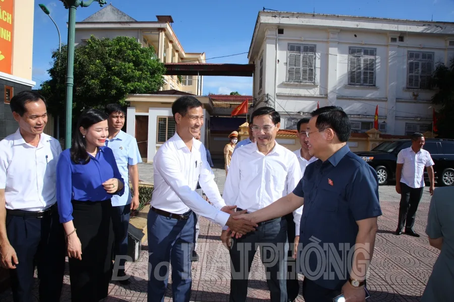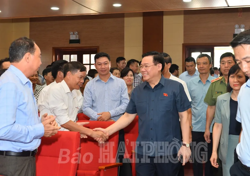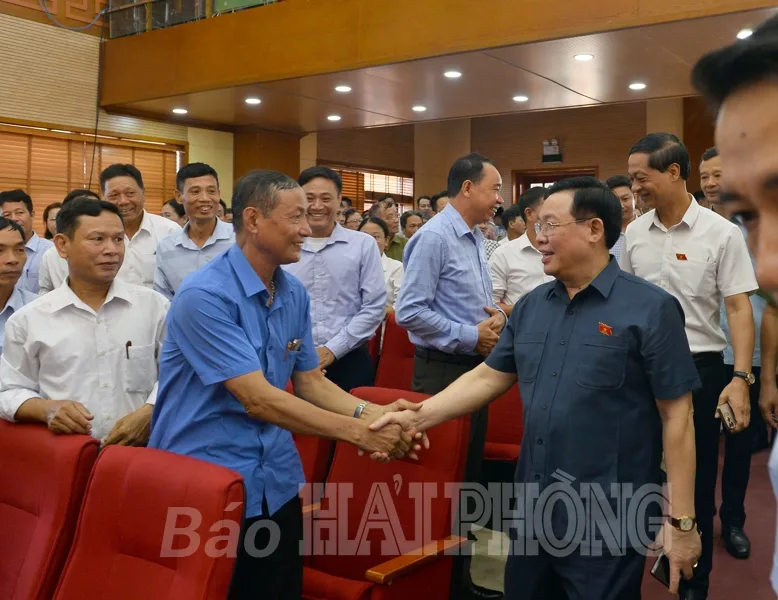 Phát biểu tại cuộc tiếp xúc, Chủ tịch Quốc hội ghi nhận, đánh giá cao các ý kiến, kiến nghị của cử tri huyện Vĩnh Bảo và khẳng định: Nguyện vọng sớm đưa các nghị quyết, Luật vừa được thông qua đi vào đời sống là hoàn toàn chính đáng. Chủ tịch Quốc hội trao đổi, chia sẻ với cử tri những yếu tố khách quan, chủ quan tác động đến phát triển kinh tế-xã hội của đất nước nói chung, thành phố Hải Phòng nói riêng. Đồng chí nhấn mạnh: Từ nhận diện rõ khó khăn, thách thức, cả hệ thống chính trị, cử tri và nhân dân nỗ lực, phát huy cao tinh thần trách nhiệm, dám nghĩ, dám làm, tuân thủ các quy định pháp luật để hoàn thành các kế hoạch, chỉ tiêu đã đề ra. Đối với những ý kiến, kiến nghị của cử tri, Chủ tịch Quốc hội khẳng định chủ trương sắp xếp các đơn vị hành chính cấp huyện, xã sẽ góp phần giảm đầu mối, tinh giản biên chế, nâng cao hiệu lực, hiệu quả hoạt động của các cấp, kể cả thôn, tổ dân phố. Đến nay, trên toàn quốc giảm 8 huyện, 561 xã. Việc sắp xếp không đơn thuần là sáp nhập cơ học mà căn cứ vào địa lý, diện tích, quy mô dân số, yếu tố lịch sử, văn hóa… Các tỉnh, thành phố cần nghiên cứu xây dựng đề án sắp xếp đơn vị hành chính, cần thiết đề xuất bổ sung cán bộ chuyên trách cấp xã tại những đơn vị có quy mô lớn để hoàn thành các nhiệm vụ sau sáp nhập. Đồng chí cho biết, trong tháng 7 này, Ủy ban Thường vụ Quốc hội sẽ ban hành nghị quyết; Chính phủ, các bộ, ngành, địa phương xây dựng kế hoạch để sẵn sàng triển khai sắp xếp đơn vị hành chính trong giai đoạn tới.
