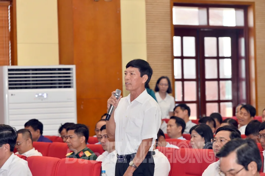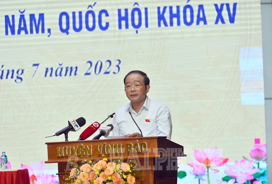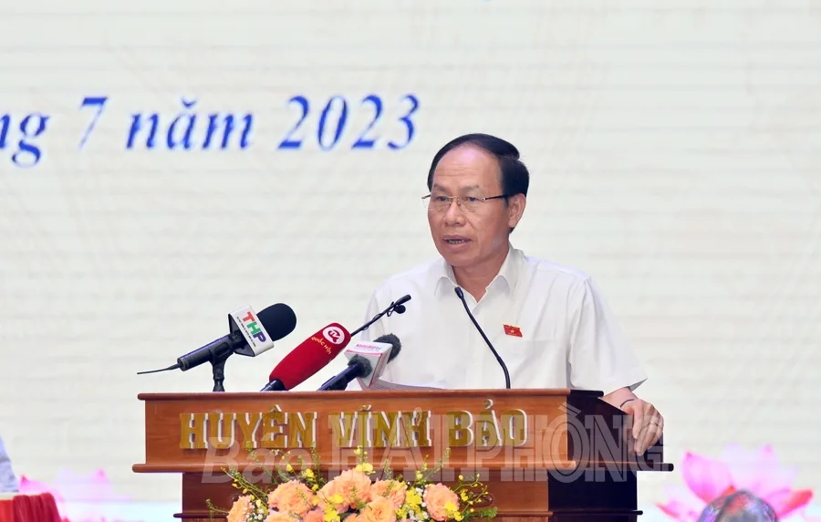 Phát biểu ý kiến tại cuộc tiếp xúc, cử tri huyện Vĩnh Bảo kiến nghị nhiều vấn đề trong việc sắp xếp đơn vị hành chính cấp huyện, cấp xã, sáp nhập thôn, sáp nhập các đơn vị sự nghiệp; các lĩnh vực tài nguyên, môi trường; tín dụng; cấp căn cước công dân; phòng cháy, chữa cháy, cứu hộ, cứu nạn; quản lý đô thị, quy hoạch; y tế; văn hóa, du lịch; nông nghiệp, nông dân, nông thôn; làng nghề truyền thống, hợp tác xã, doanh nghiệp nhỏ và vừa…