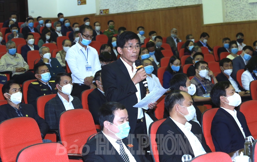 Cử tri quận Hải An phát biểu nhiều ý kiến, kiến nghị và đề xuất một số vấn đề cụ thể với Quốc hội, Chính phủ, các bộ, ngành Trung ương. Cử tri Phạm Thành Văn, phường Đằng Lâm, nguyên Chánh Thanh tra thành phố Hải Phòng đề nghị Quốc hội, Chính phủ quan tâm chỉ đạo tăng cường công tác tuyên truyền về kết quả phòng, chống dịch bệnh, tạo tâm lý yên tâm, an toàn cho nhân dân; quan tâm củng cố hệ thống y tế ở cơ sở cả về trang thiết bị và nhân lực; quan tâm mục tiêu ổn định kinh tế vĩ mô kiêm kiểm soát lạm phát, nhất là việc tăng giá nhiên liệu, vật tư thiết yếu: xăng dầu, điện, sắt, thép… để bảo đảm hiệu quả các gói hỗ trợ, nhất là hỗ trợ tiêu dùng, ổn định đời sống của các đối tượng chính sách xã hội…