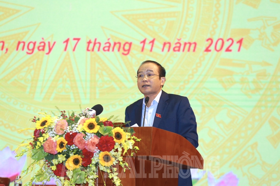 Ngày 17/11, tại quận Hải An, đồng chí Vương Đình Huệ, Ủy viên Bộ Chính trị, Chủ tịch Quốc hội cùng và các đồng chí: Trần Lưu Quang, Ủy viên Trung ương Đảng, Bí thư Thành ủy, Trưởng Đoàn đại biểu Quốc hội Hải Phòng; Nguyễn Hồng Diên, Ủy viên Trung ương Đảng, Bộ trưởng Bộ Công Thương; Đỗ Mạnh Hiến, Phó bí thư Thường trực Thành ủy cùng các đại biểu Quốc hội Hải Phòng tiếp xúc đại biểu cử tri thành phố Hải Phòng, báo cáo kết quả kỳ họp thứ 2, Quốc hội khóa 15.