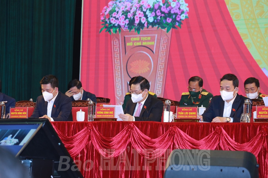 Chủ tịch Quốc hội ghi nhận, tiếp thu các ý kiến về giáo dục, bảo đảm an sinh xã hội, xây dựng nhà ở xã hội; đầu tư cho y tế cơ sở; thực hiện các biện pháp đồng bộ để thích ứng an toàn, linh hoạt, kiểm soát hiệu quả dịch bệnh COVID-19… Chủ tịch Quốc hội khẳng định, với vai trò là đại biểu Quốc hội Hải Phòng, đồng chí sẽ luôn quan tâm, ủng hộ, làm hết sức mình, đóng góp những viên gạch nhỏ để tạo điều kiện đưa Hải Phòng phát triển trong giai đoạn mới, đóng góp tích cực vào sự phát triển chung của đất nước.