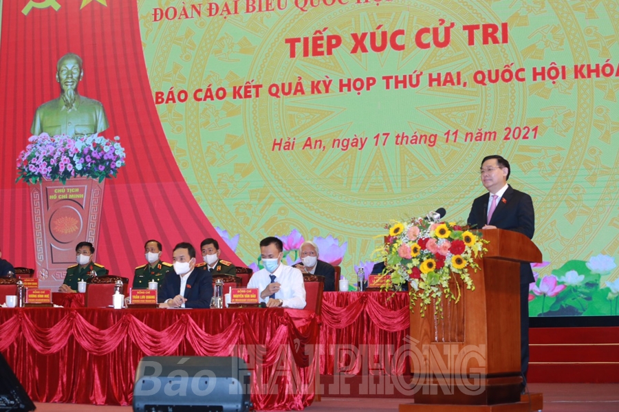 Chủ tịch Quốc hội mong muốn cử tri Hải Phòng cũng như cả nước tiếp tục quan tâm, theo dõi, giám sát, động viên, khích lệ để hoạt động của Quốc hội ngày càng hiệu lực, hiệu quả. Chủ tịch Quốc hội thông tin một số tình hình, kết quả nổi bật của đất nước trong bối cảnh năm 2021 có muôn vàn khó khăn thách thức. Theo Chủ tịch Quốc hội, sự ổn định, phát triển của đất nước mặc dù đại dịch COVID-19 lan rộng, gây hậu quả nặng nề, ảnh hưởng nghiêm trọng là thành công quan trọng, là nền tảng để trong thời gian tới tiếp tục phát triển mạnh mẽ, tăng trưởng cao hơn, ngày càng phồn vinh, thịnh vượng.